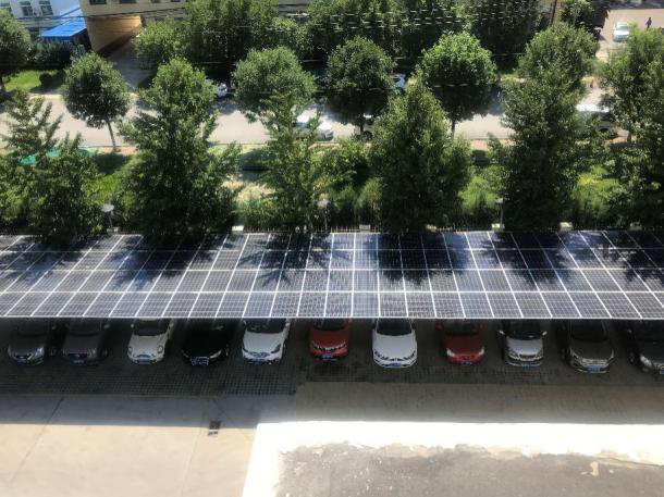 九朗新能源公司通過再擔(dān)保公司“節(jié)能貸”產(chǎn)品獲取授信后,為高耗能企業(yè)建設(shè)的采用“自發(fā)自用、余量上網(wǎng)”模式的車棚分布式電站。
