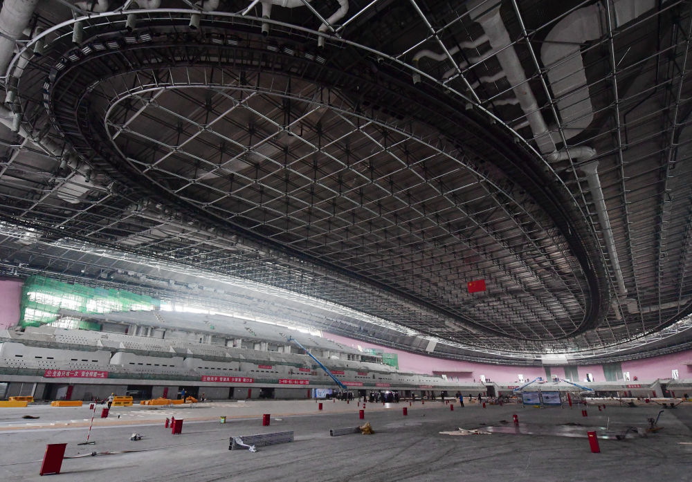 據(jù)宋家峰介紹,冰絲帶在2019年完成了場(chǎng)館的封閉封圍,簡(jiǎn)單說就是室外的玻璃幕墻和屋頂建設(shè)完成。今年的主要工程是機(jī)電安裝、室內(nèi)裝修以及最重要的制冰工程。