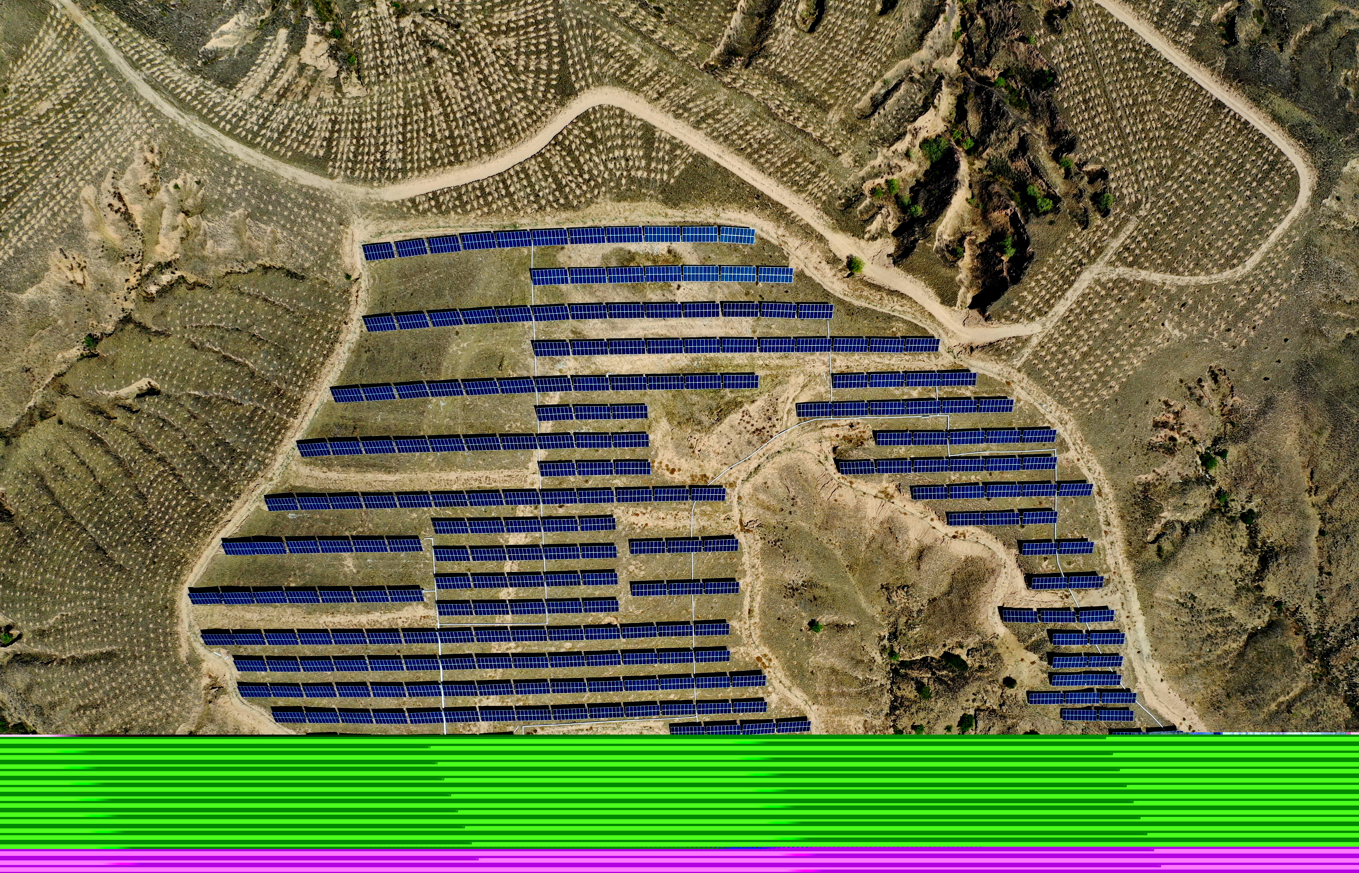 張家口市懷安縣西沙城鄉(xiāng)西沙城村附近荒山上的光伏發(fā)電場(chǎng)。新華社記者楊世堯攝