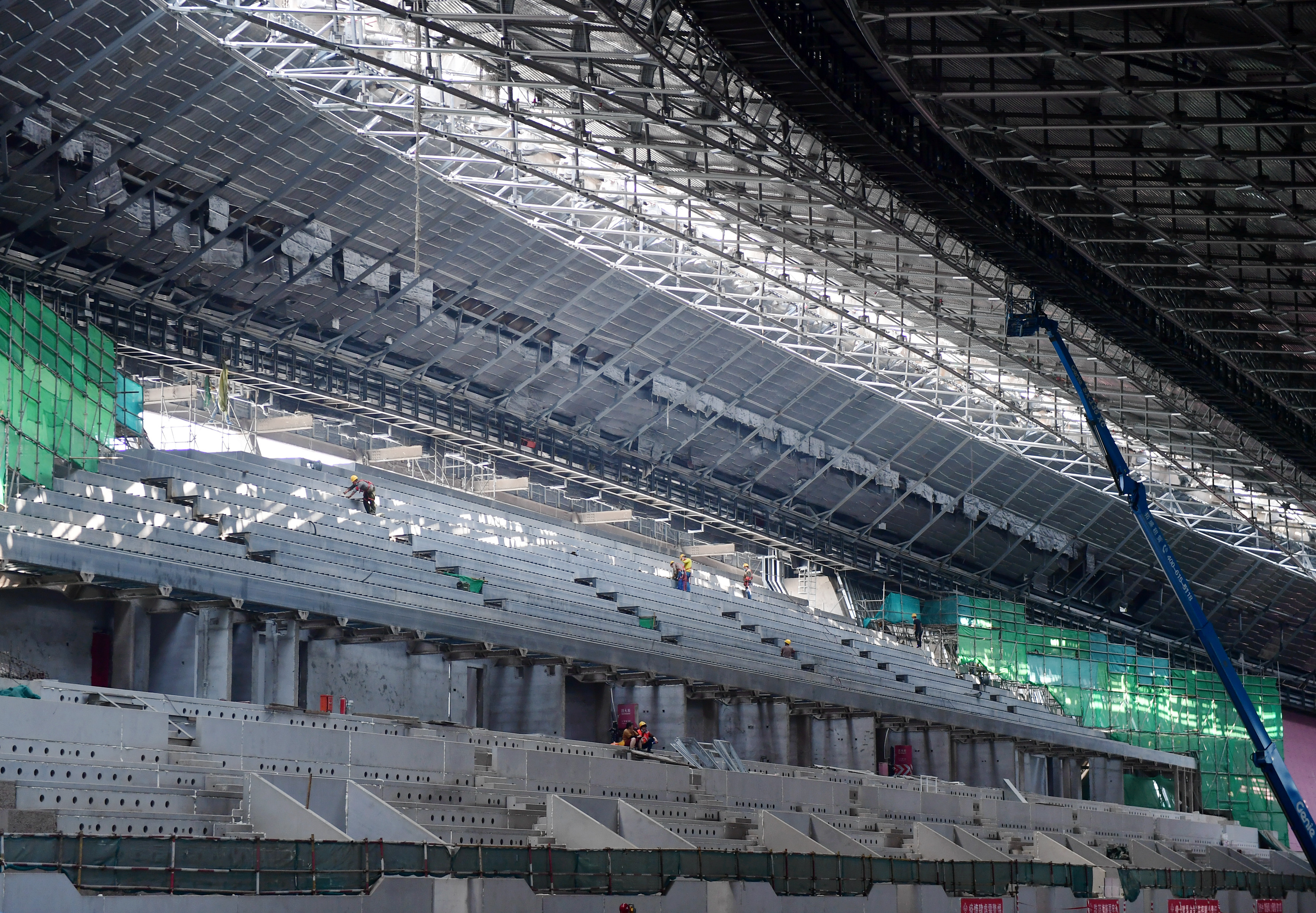 工人在首都體育館內(nèi)施工。新華社記者張晨霖?cái)z