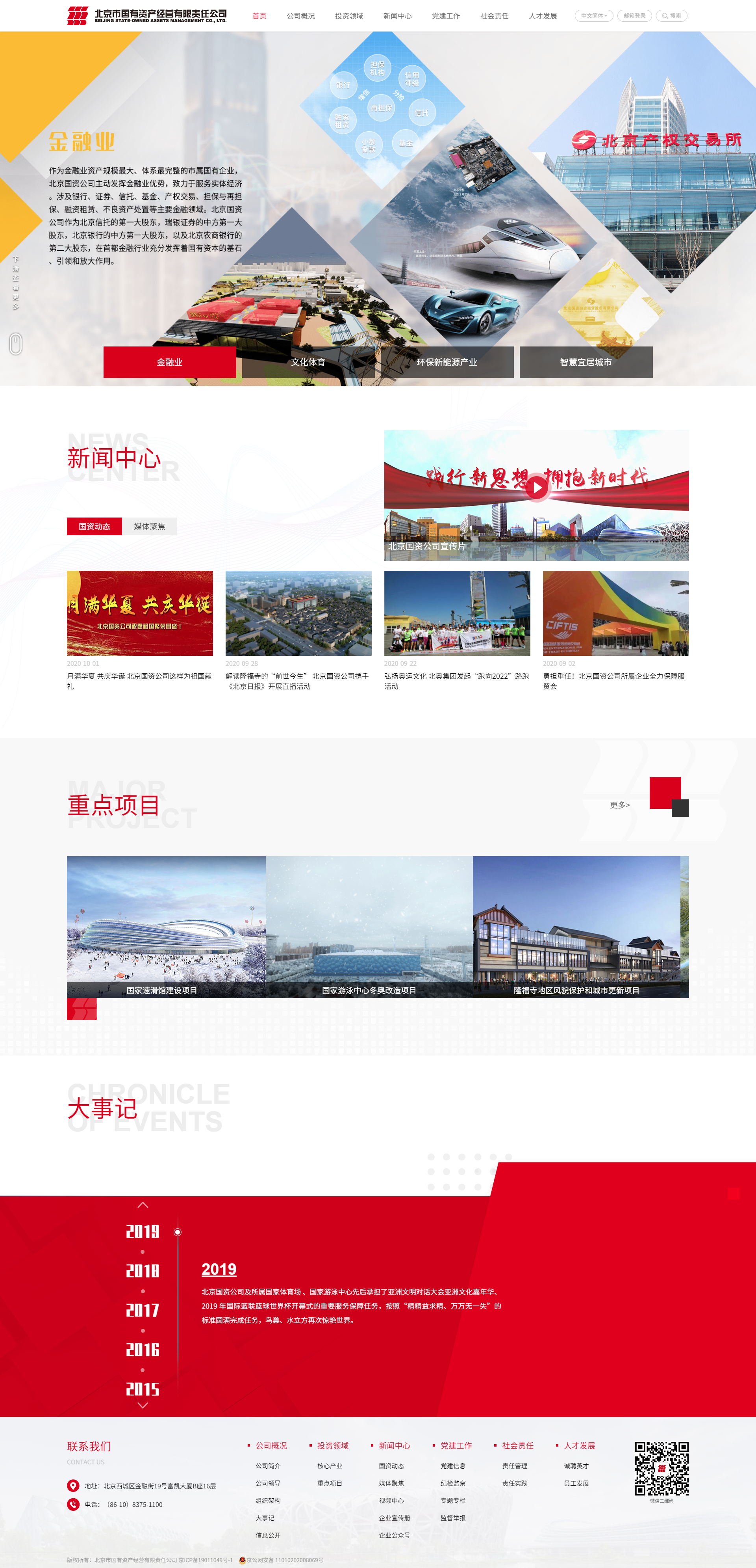 在內(nèi)容設(shè)置方面,首頁(yè)充分運(yùn)用視頻、輪播大圖等多媒體宣介手段,多維度呈現(xiàn)四大產(chǎn)業(yè)板塊,重點(diǎn)展示國(guó)家速滑館建設(shè)、國(guó)家游泳中心冬奧改造、隆福寺地區(qū)風(fēng)貌保護(hù)和城市更新、南海子體育休閑產(chǎn)業(yè)園等市級(jí)重大項(xiàng)目。設(shè)置公司概況、投資領(lǐng)域、新聞中心、黨建工作、社會(huì)責(zé)任、人才發(fā)展6個(gè)一級(jí)欄目,核心產(chǎn)業(yè)、重點(diǎn)項(xiàng)目、國(guó)資動(dòng)態(tài)、媒體聚焦、黨建信息等22個(gè)二級(jí)欄目,全面展示了國(guó)資公司及所屬二級(jí)企業(yè)的品牌形象、重要成果。