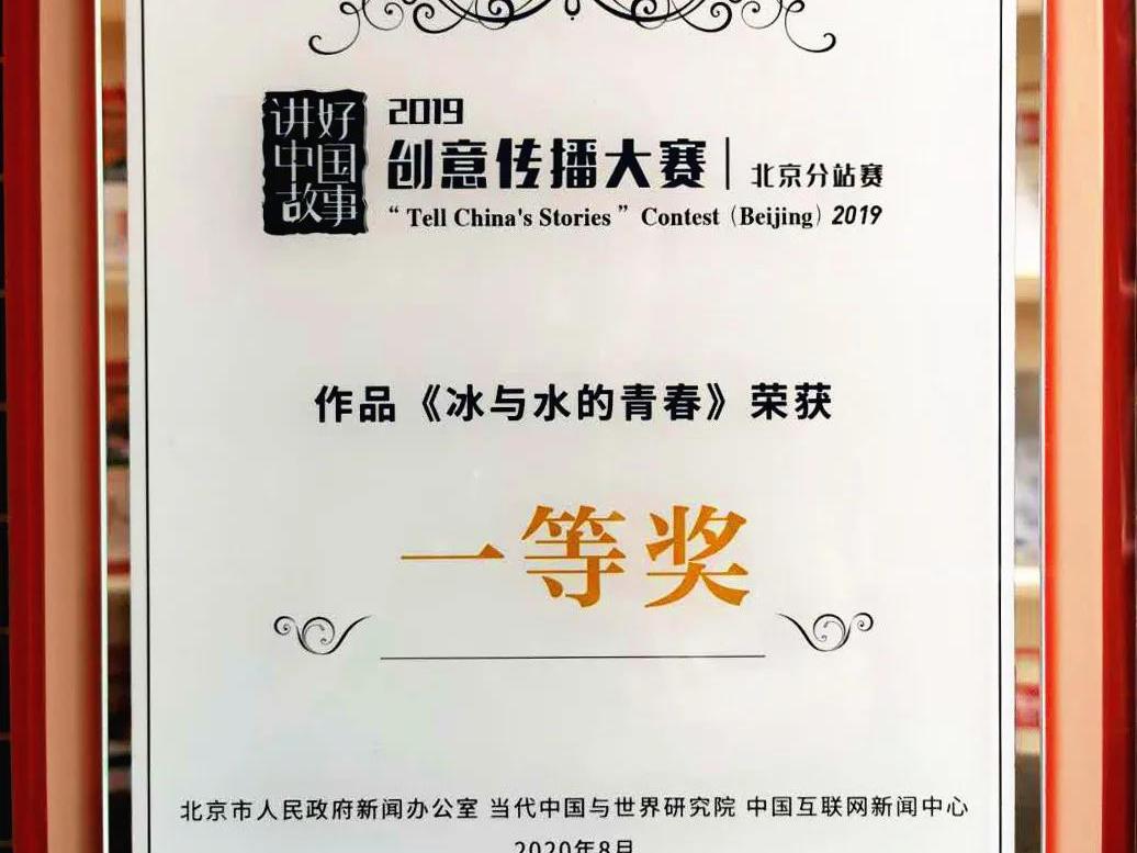 《冰與水的青春》榮獲2019講好中國故事創(chuàng)意傳播大賽北京分站賽一等獎