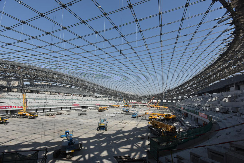 2019年4月“冰絲帶”““天幕”編織完成