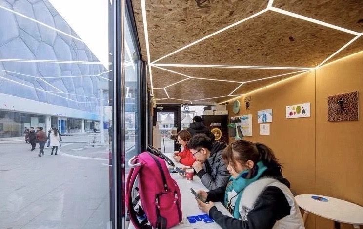 ↑集裝箱自助咖啡廳。國家游泳中心供圖