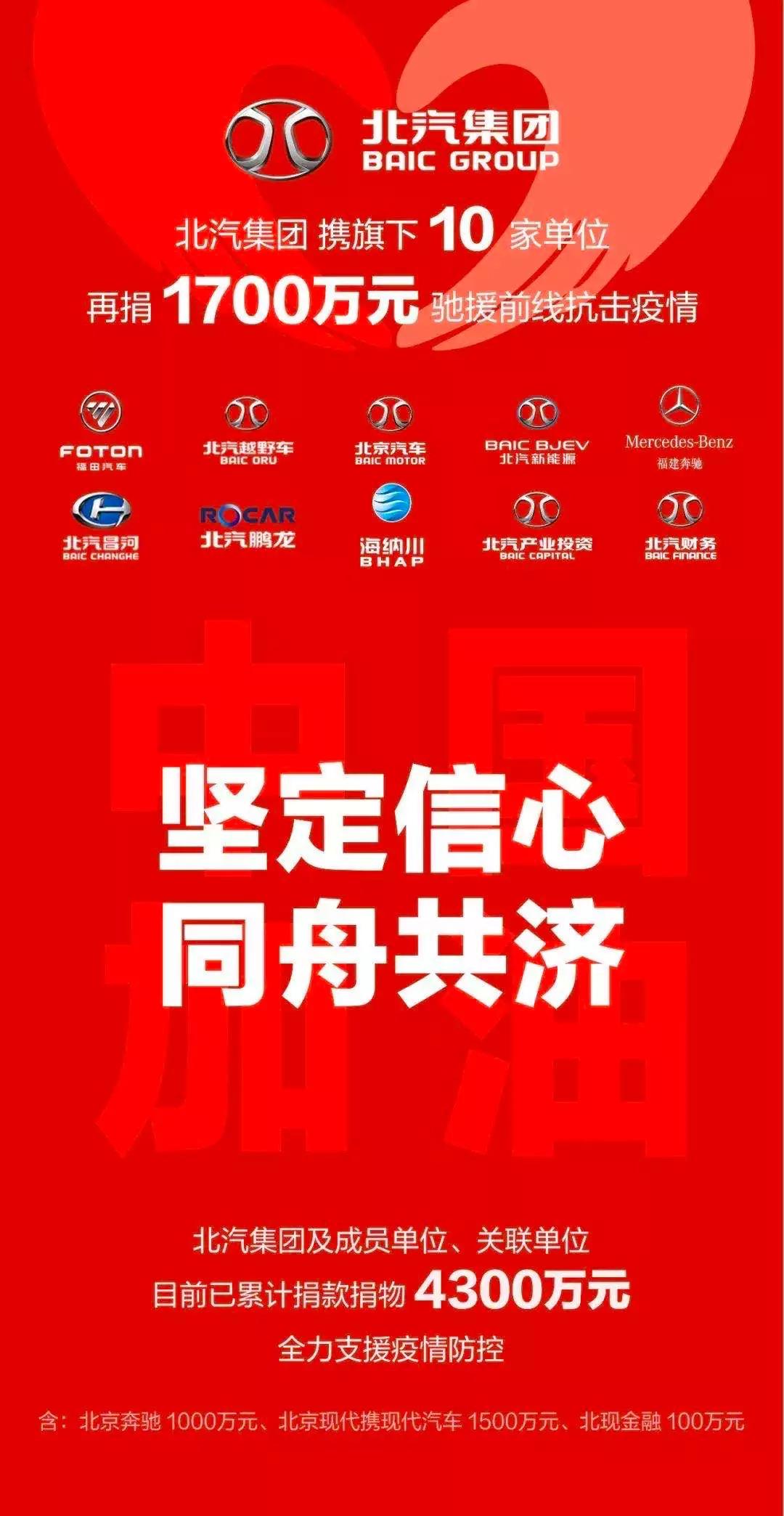 北汽集團(tuán)捐款捐物4300萬元、華夏銀行捐款3000萬元、京東方捐款1000萬元……
