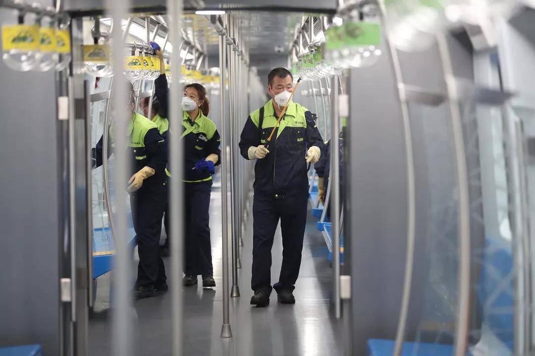 北京地鐵“無死角”消毒,全網(wǎng)車站測溫進(jìn)站,列車四次消毒方可出庫。