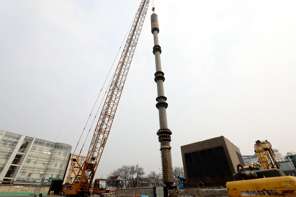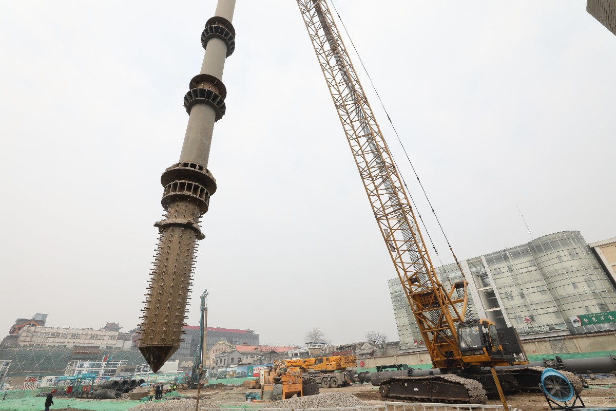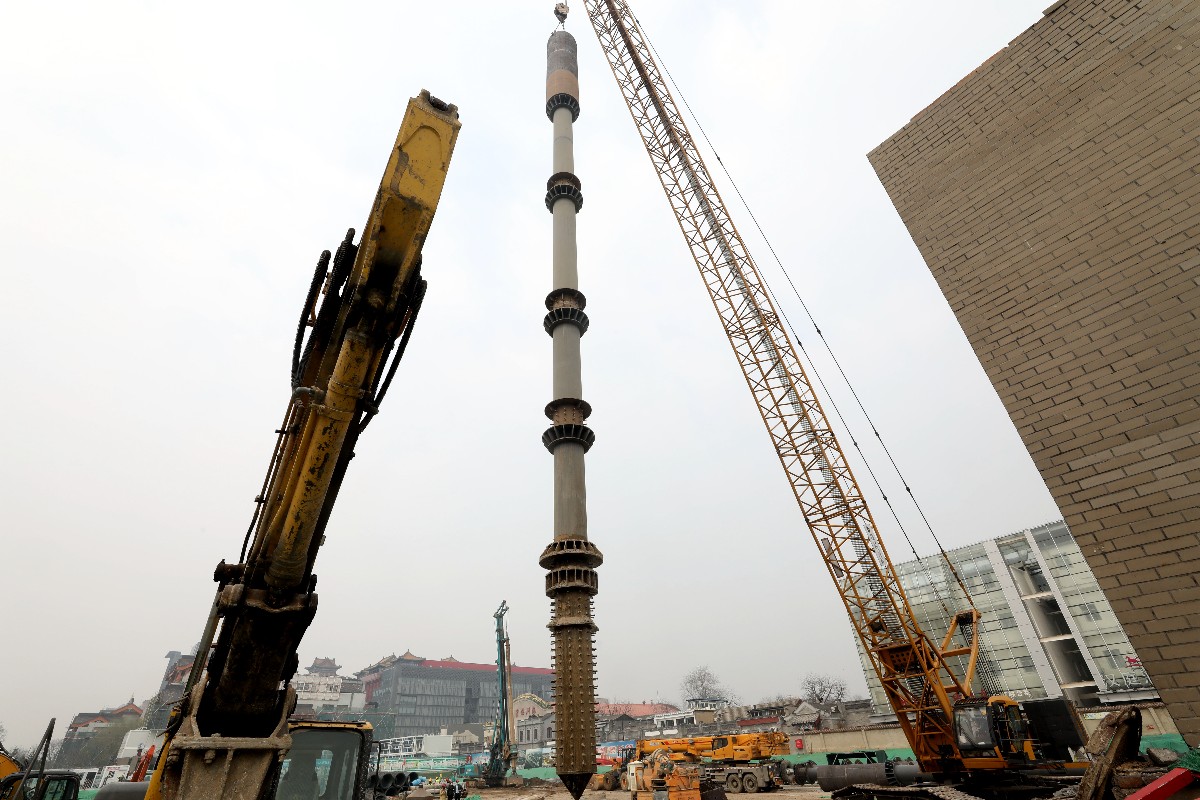 這就相當(dāng)于蓋房先蓋房頂,最后做地基。在7000余平方米的范圍內(nèi),先在地下打入92根鋼管柱搭起骨架,然后開挖2米左右做地下空間頂板,待頂板結(jié)構(gòu)穩(wěn)定,再依次開挖地下一二三四層。每根鋼管柱直徑達(dá)80厘米,有24米高。據(jù)介紹,預(yù)計6月中下旬樁基工程可以全部完工。而整個織補(bǔ)項(xiàng)目將于2022年底建成。未來,地下空間將與東四地鐵站實(shí)現(xiàn)連通。