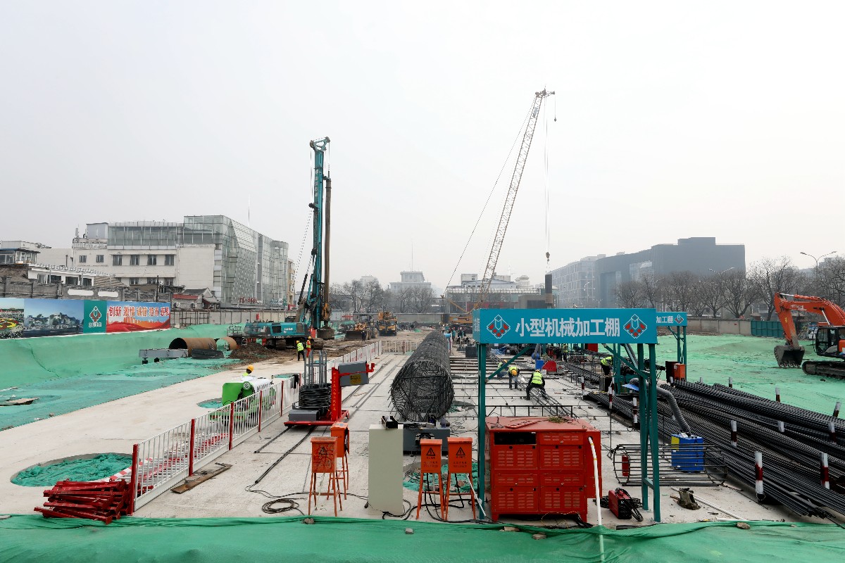 吊裝車巨臂揮舞,旋挖鉆機(jī)轟鳴作響。3月25日,東四路口西北角,東四地鐵站織補(bǔ)項(xiàng)目施工現(xiàn)場一派繁忙,40余名工人和管理人員正緊張忙碌著。當(dāng)日,隆福寺項(xiàng)目東四地鐵站織補(bǔ)地塊首樁正式開鉆,這意味著工程開始進(jìn)入主體結(jié)構(gòu)施工階段。