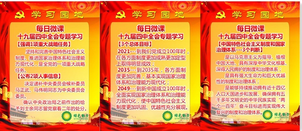 國(guó)通公司舉辦“黨的十九屆四中全會(huì)精神知識(shí)競(jìng)賽”答題活動(dòng);綠色動(dòng)力集團(tuán)將黨的十九屆四中全會(huì)精神納入集團(tuán)“每日一學(xué)”內(nèi)容;北工投資公司第一時(shí)間在宣傳欄深入宣傳黨的十九屆四中全會(huì)精神;新隆福公司和國(guó)苑公司充分利用“學(xué)習(xí)強(qiáng)國(guó)”平臺(tái)開展黨的十九屆四中全會(huì)精神自學(xué)和自測(cè);再擔(dān)保公司及時(shí)通過公司黨建微信公眾號(hào),推送“學(xué)習(xí)輔導(dǎo)百問有聲讀物”等宣教內(nèi)容,深化黨員群眾對(duì)黨的十九屆四中全會(huì)精神的理解。