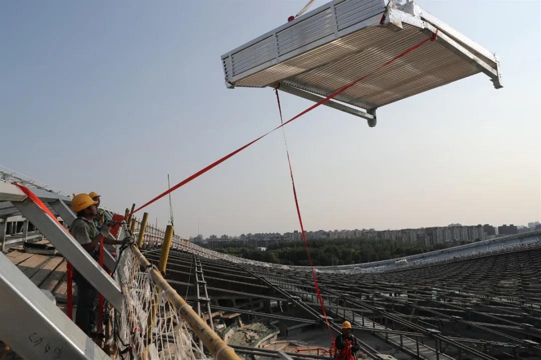 2019年9月,國家速滑館開始安裝屋面面板