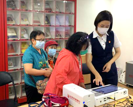 黨員們?yōu)轶A站老年人現(xiàn)場(chǎng)激活養(yǎng)老助殘卡