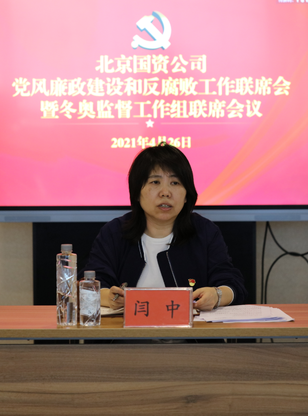 4月26日下午,國資公司召開黨風(fēng)廉政建設(shè)和反腐敗工作聯(lián)席會暨冬奧監(jiān)督工作組聯(lián)席工作會議。國資公司紀(jì)委書記、冬奧監(jiān)督工作組組長閆中主持會議并講話。公司黨委巡察辦、冬奧工作領(lǐng)導(dǎo)小組辦公室、公司紀(jì)委相關(guān)部室負(fù)責(zé)人,計(jì)劃財務(wù)部、審計(jì)部、法律合規(guī)部等冬奧監(jiān)督工作組成員部門的負(fù)責(zé)同志,以及國家體育場、國家速滑館、國家游泳中心、北奧集團(tuán)、首都信息、水晶石公司、北演公司等涉奧二級企業(yè)紀(jì)檢機(jī)構(gòu)的負(fù)責(zé)同志參加會議。