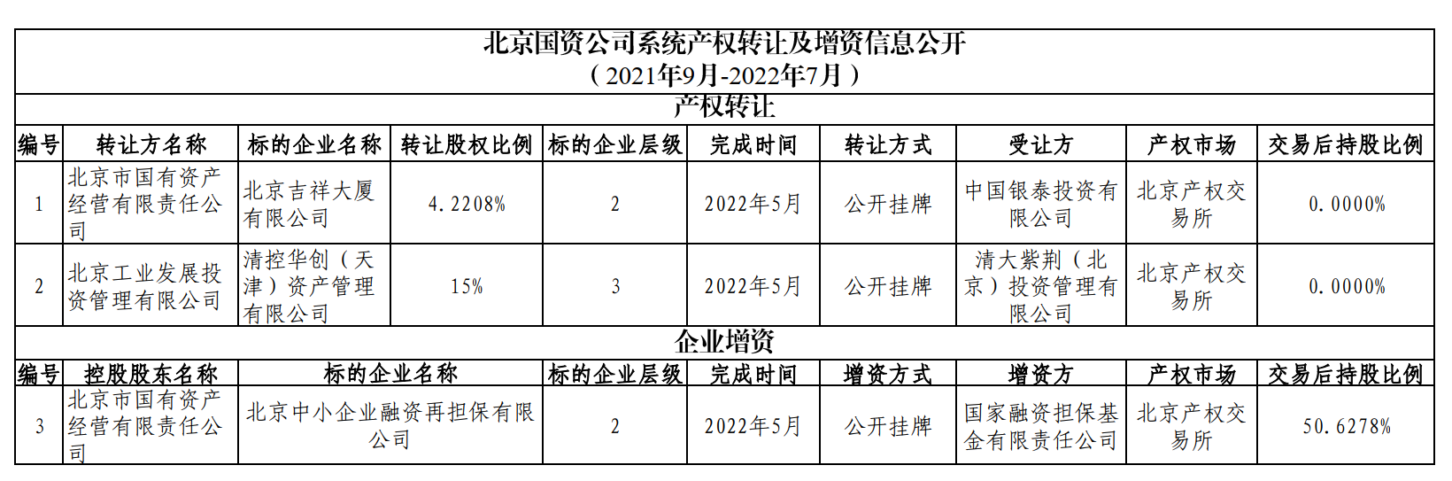 北京國(guó)資公司系統(tǒng)產(chǎn)權(quán)轉(zhuǎn)讓及增資信息公開(kāi)(2021年9月-2022年7月)