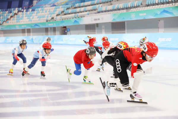 青少年在國家速滑館練習(xí)滑冰。 北京國資公司供圖