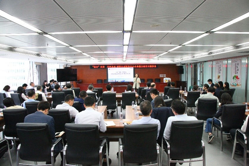 此次活動(dòng)以“益企”出發(fā),共向未來(lái)—國(guó)資公司服務(wù)中小企業(yè)能力建設(shè)為主題,邀請(qǐng)國(guó)資公司金融部、再擔(dān)保公司、國(guó)融工發(fā)公司相關(guān)人員分別以《國(guó)資公司服務(wù)中小企業(yè)能力建設(shè)情況》《擔(dān)保助力中小企業(yè)發(fā)展》《中小企業(yè)服務(wù)經(jīng)驗(yàn)與思考》為題交流發(fā)言,分享中小企業(yè)發(fā)展概況、痛點(diǎn)難點(diǎn)及國(guó)資公司服務(wù)中小企業(yè)的情況和特點(diǎn)。隨后,黨委組織部、戰(zhàn)略研發(fā)部、城市功能部三位員工作為嘉賓,以圓桌論壇的形式,圍繞如何進(jìn)一步加強(qiáng)國(guó)資公司服務(wù)中小企業(yè)能力進(jìn)行了深入探討,現(xiàn)場(chǎng)參會(huì)員工自愿分享體會(huì)、感悟。