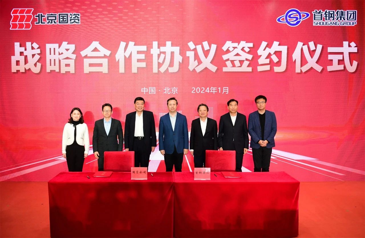 1月12日,北京國資公司與首鋼集團(tuán)戰(zhàn)略合作協(xié)議簽約儀式在國家體育場(鳥巢)金色大廳舉行。北京市國資委黨委書記、主任曾勁出席儀式并致辭。北京國資公司黨委書記、董事長趙及鋒,黨委副書記、董事、總經(jīng)理張杰,黨委常委、副總經(jīng)理孫婧;首鋼集團(tuán)黨委書記、董事長趙民革,黨委副書記、董事、總經(jīng)理邱銀富,副總經(jīng)理趙天旸等參加簽約儀式。儀式上,張杰與邱銀富分別代表雙方簽署戰(zhàn)略合作協(xié)議。