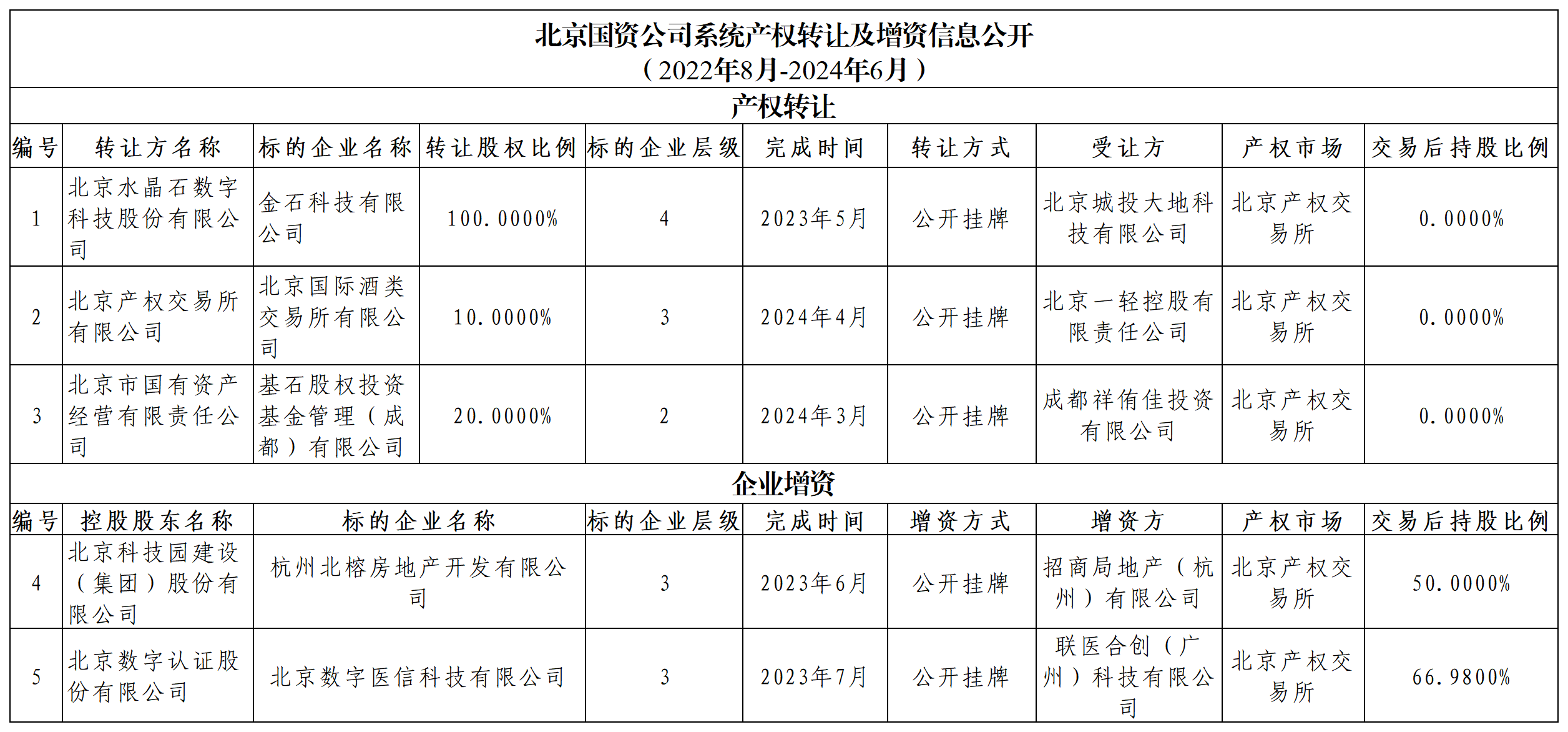 北京國資公司系統(tǒng)產(chǎn)權轉(zhuǎn)讓及增資信息公開(2022年8月-2024年6月)