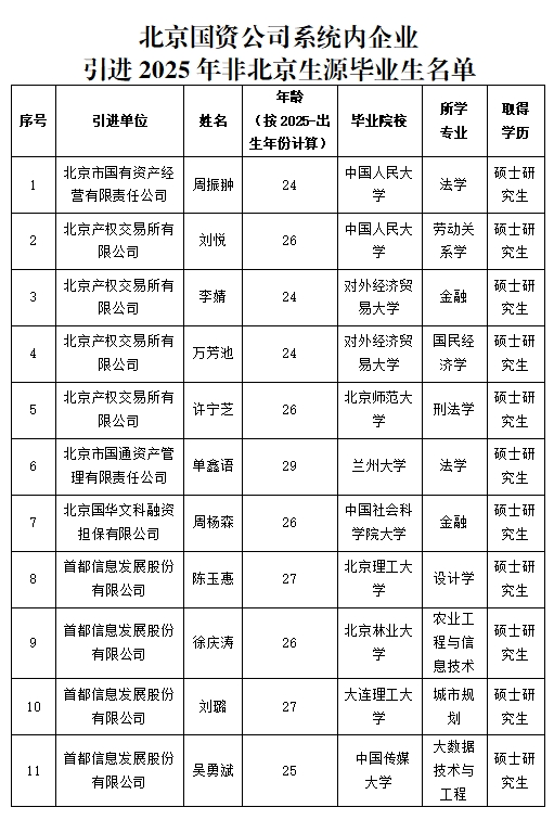 為加強(qiáng)畢業(yè)生接收工作社會(huì)監(jiān)督,現(xiàn)將我公司系統(tǒng)內(nèi)企業(yè)引進(jìn)2025年非北京生源畢業(yè)生予以公示。